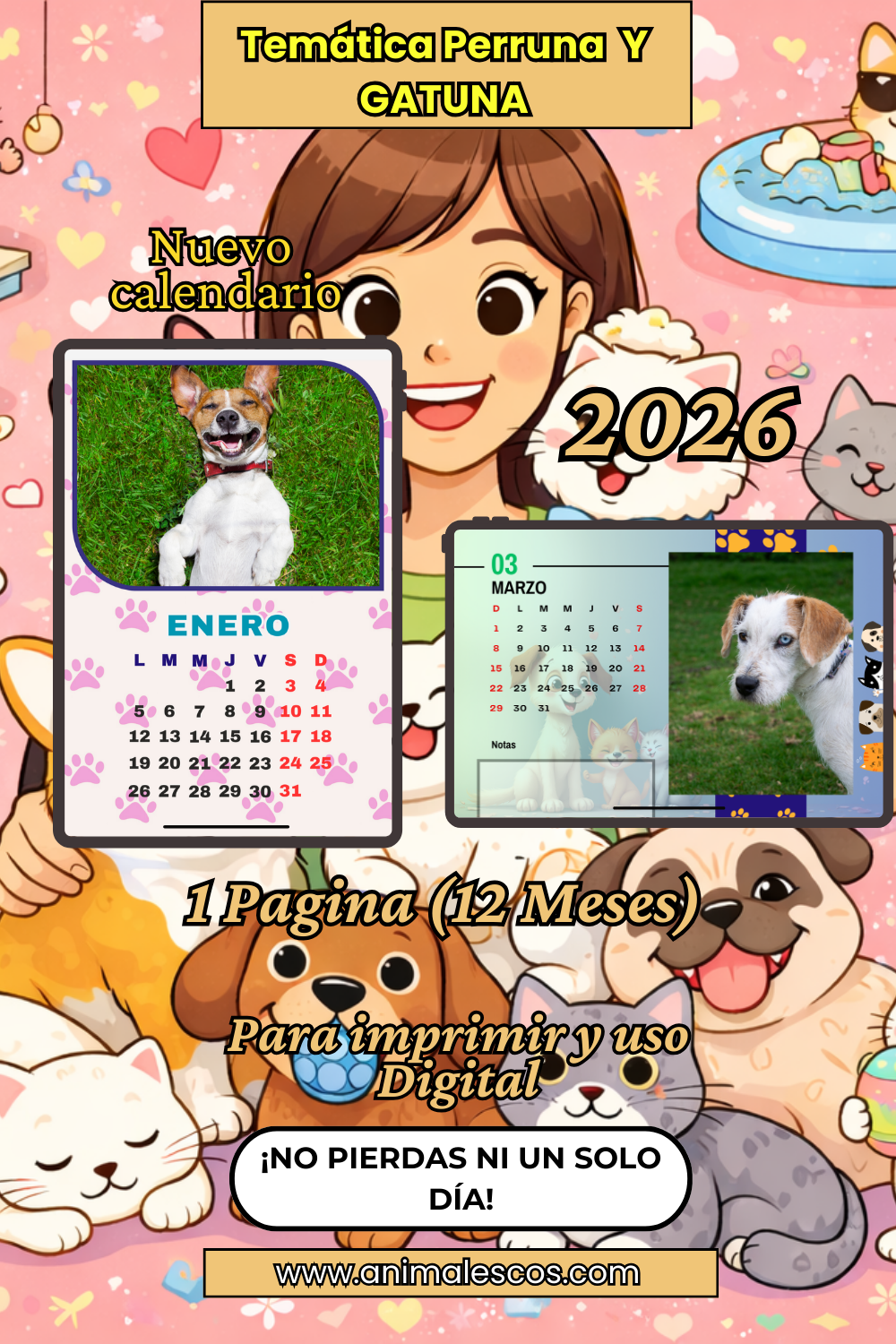 📅Calendario Mensual 2026: Convirtiendo mi 2026 en recuerdos con huellas de amor 🐾🐶😻